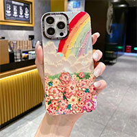 Suitable for iPhone16promax- iphone7 case beautiful oil painting flower pendant
