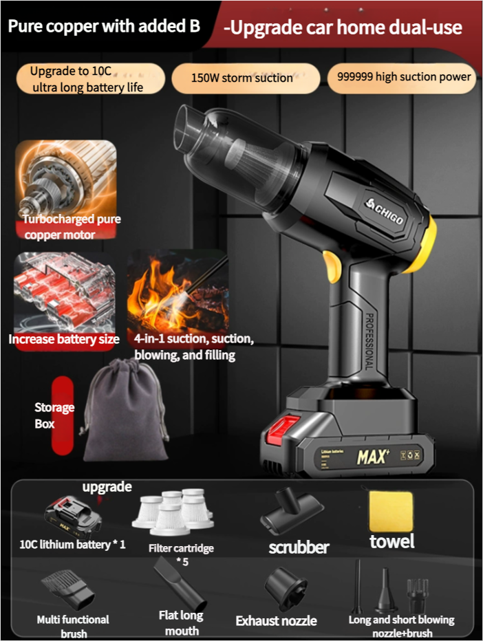 Car vacuum cleaner with strong suction power, wireless, portable, mini, small and high-power for household use