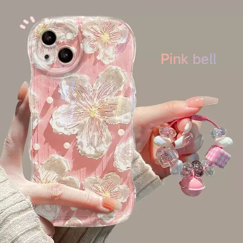 Suitable for iPhone16promax- iphone7 case beautiful oil painting flower pendant