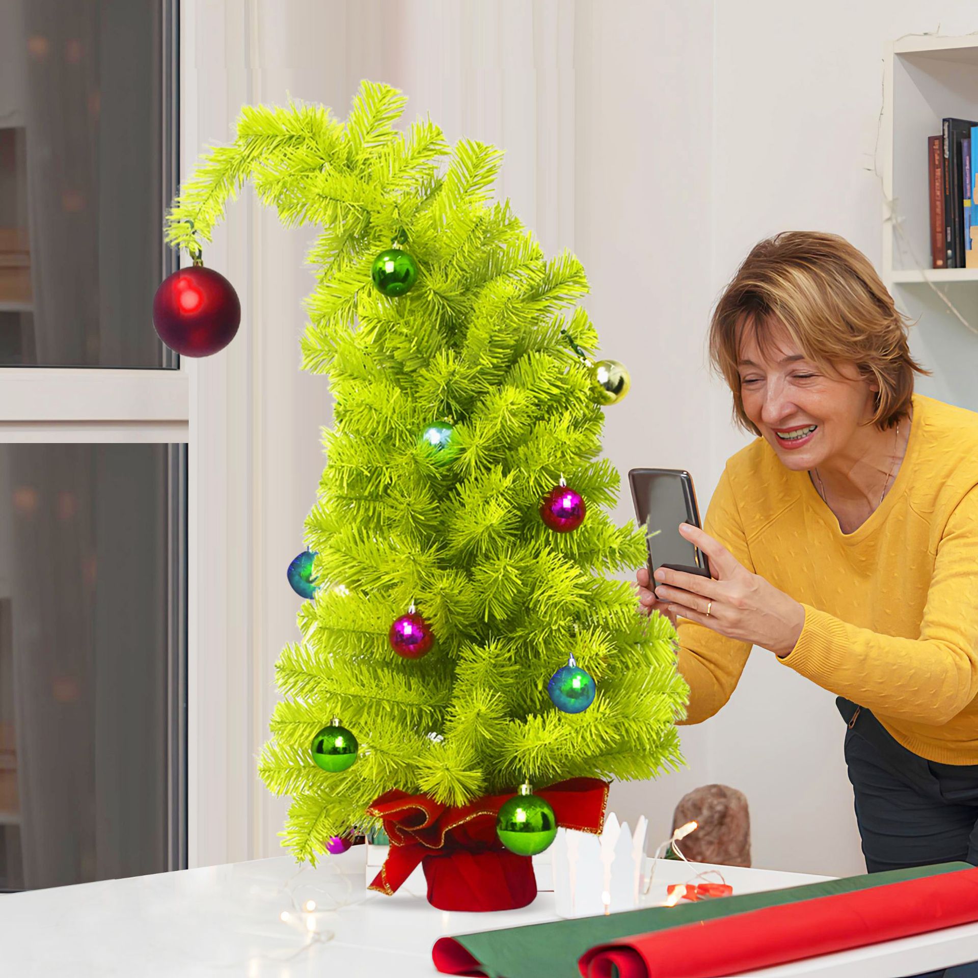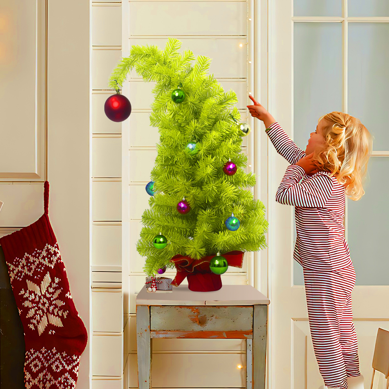 2025 Green Leaning Christmas Tree, Modern Tilted Xmas Decor, Unique Artificial Pine, Home Tabletop Festive Display