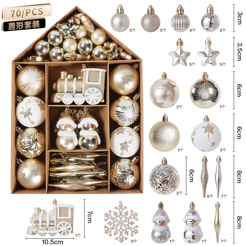 Christmas House Ornament Set, 70 Pc Decorations Kit, Hanging Ball Ornaments, Tree Decor Set, Festive Village Display