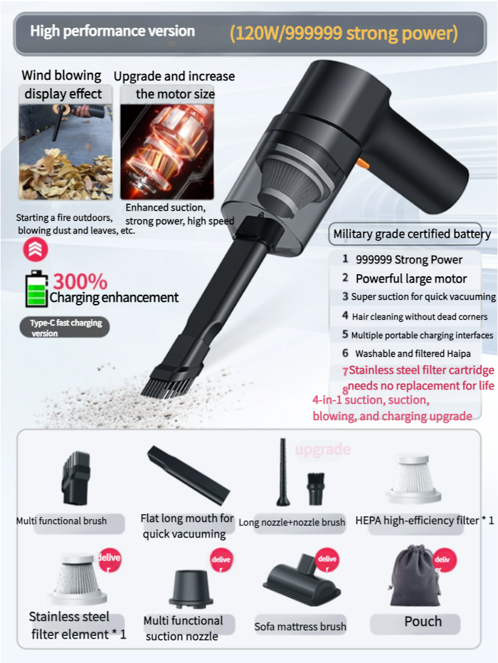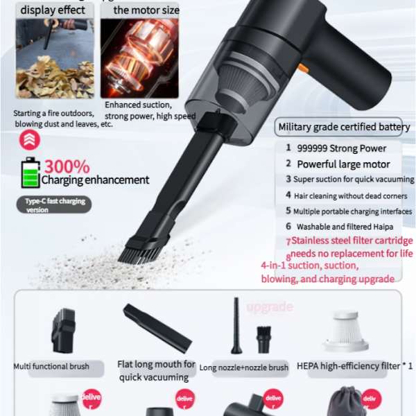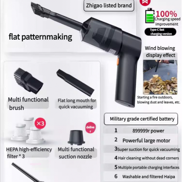 Zhigao Car Mini Vacuum cleaner, wireless charging for cars, household use, strong suction power, powerful, small handheld